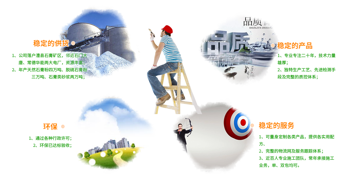 常德宏冠石膏環保材料科技有限公司,是一家集研發、生產銷售、推廣應用及施工指導為一體的大型石膏類產品生產企業。下轄“石膏粉料”和“石膏砂漿”二個生產基地,年產量10萬噸以上?!案嗫铺焙汀昂旯诿勒笔巧钍芟M者喜愛的公司產品系列。